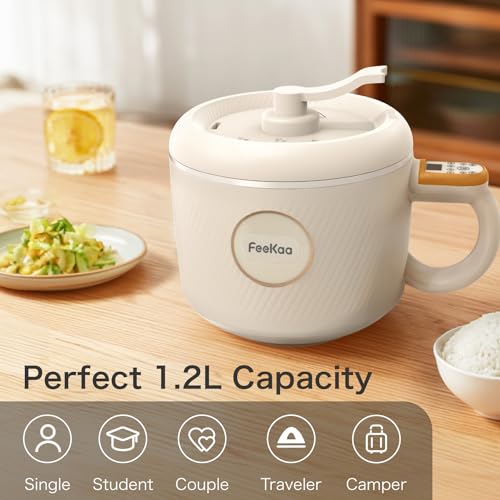 Mini Rice Cooker 2 Cup, Feekaa Rice Cooker Small 1.2L, Small Removable Electric Rice Cooker for 1-2 people, 6 Modes Rice Cooker for White Rice, Brown Rice, Stew, Ramen, Porridge, Hot Pot