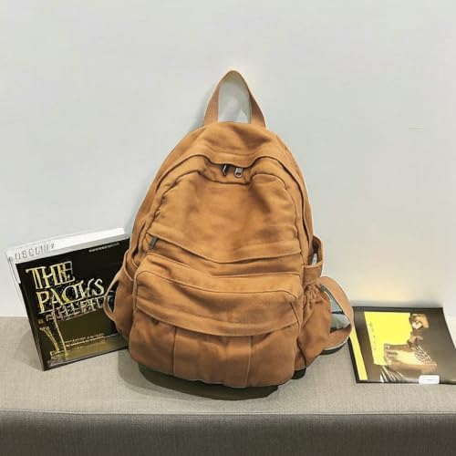 IAUGO Canvas Backpack for Women Cute Backpack for Women Vintage Laptop Aesthetic Knapsack-Brown