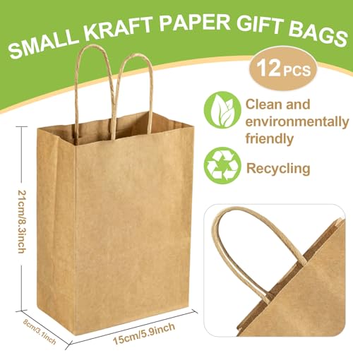 MAQIHAN Small Kraft Bags with Handles 12 pcs Kraft Gift Paper Bags Brown Kraft Bag Small Gift Bag Craft Bags with Candy Birthday Party Favor Christmas Valentines Shopping Small Business Gift Bags