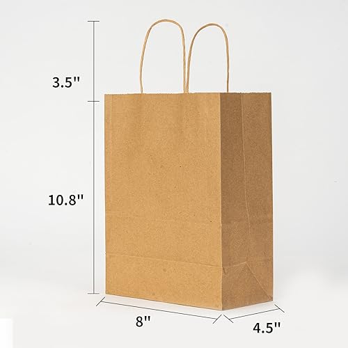 METAPRINT 100 Pack 8×4.5×10.8 Inch Medium Paper Gift Bags with Handles Bulk, Brown Kraft Paper Bags for Grocery Shopping Retail Bags, Birthday Party Favors Wedding Bags