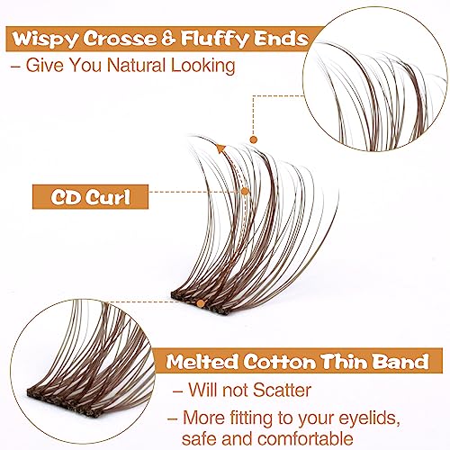 Brown Cluster Lashes – This brown lash extensions is 120pcs value pack,5 differnet length mixed DIY lashes extensions: 8mmx24pcs, 10mmx24pcs, 12mmx24pcs, 14mmx24pcs, 16mmx24pcs, based on your preferences and desired natural false lashes visual effects, you can diy at home instead of salon, save more money and time for makeup, more convenient