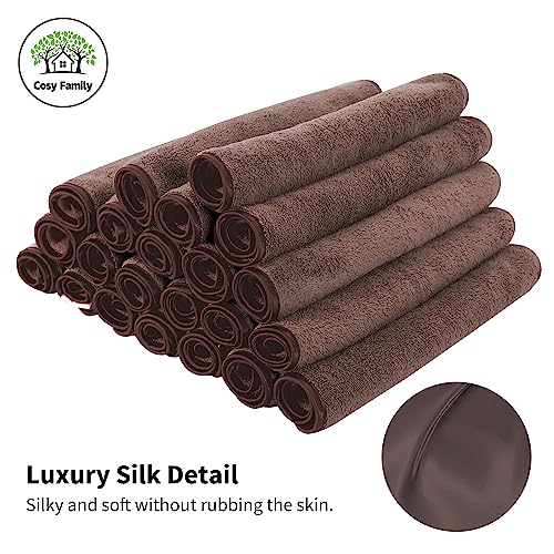 Cosy Family Luxuriously Soft Washcloths Set – 12 x 12 inches – 24 Pack – Quick Drying – Highly Absorbent Coral Velvet Fingertip Towel Bathroom Wash Clothes for Bath, Spa, Facial, Kitchen – Wood Brown