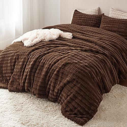 Bedsure Faux Fur Comforter Set – Soft, Chocolate Brown Queen Size Bedding, Warm and Plush Shaggy Comforter with 2 Pillowcases
