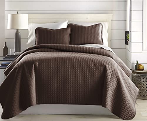 Southshore Fine Living, Inc. Full/Queen Quilt Bedding Set, Comfy Microfiber Coverlet, Queen Size Bedspread, Stain and Pet Hair Resistant Bedding, Full Size Quilt Set w/2 Shams, Chocolate Brown
