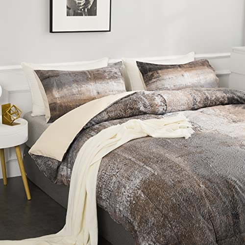 Ylehoc Abstract Brown and Grey Comforter Sets Queen Modern Art Bedding Sets 3 Pieces 1 Painting Comforter and 2 Pillow Shams for Adults Ultra-Soft Breathable Microfiber All-Seasons for Bedroom Sofa