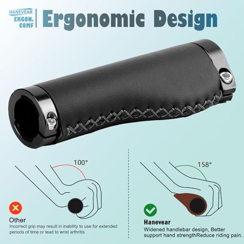 HANEVEAR Bike Handlebar Grips, 1 Pair Ergonomic Comfort Bike Grips | Vinyl Leather Grips, Double Lock-on Hand-Stitched Bicycle Handlebar Grips for MTB, BMX, E-Bike,Mountain Bike (Brown)