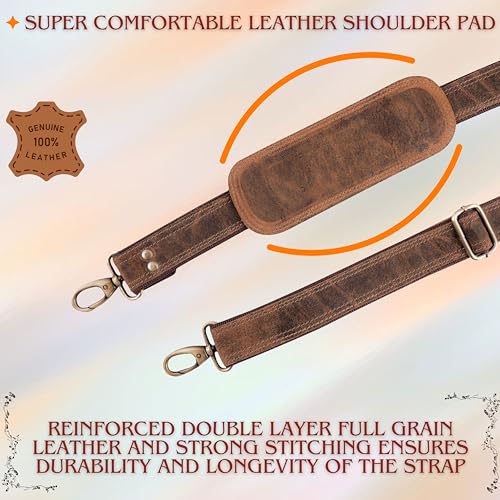**BUFFALO LEATHER – Our leather replacement shoulder straps are made of Genuine BUFFALO leather with Original brass accessories | HEAVY DUTY HOOKS – Sturdy swivel hooks are strong enough for the heaviest of bags, with durability to withstand the wear of a travel day (Antique Bronze)