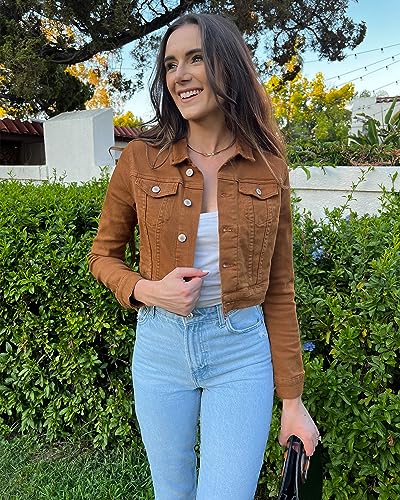 luvamia Womens Fashion Long Sleeve Button Down Stretchy Denim Jean Jacket Jacket For Women Brown Jacket Women Womens Western Wear Brown Size Large Fits Size 12 / Size 14