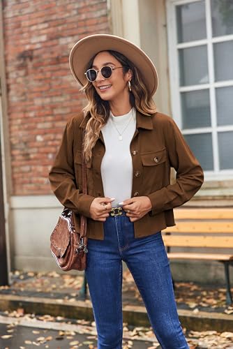 Zeagoo Corduroy Cropped Shacket Jacket Women Button Down Shirts Long Sleeve Crop Trendy 2024 Jacket Outfits Brown