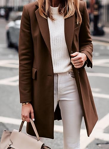 Zwurew Womens Notched Lapel Collar Single Breasted Pea Coat Casual Fall Winter Jacket Mid-Long Dark Brown Trench Coats