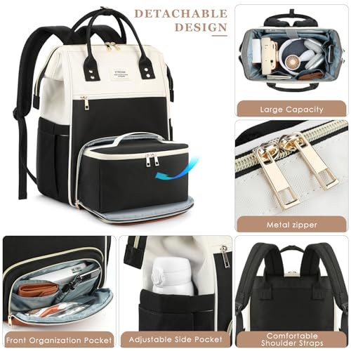 ETRONIK Lunch Backpack, 17.3 Inch Laptop Backpack with USB Port, Stylish Nurse, Teacher Work Bag with Insulated Cooler Lunch Box for Women Men/Travel, Black-Beige-Brown