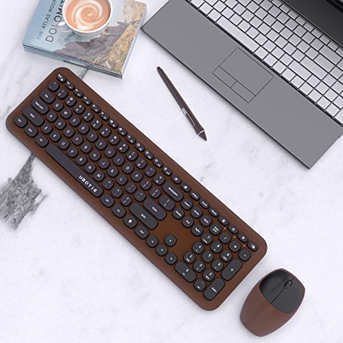 Wireless Computer Keyboards Mice Combo, UBOTIE Colorful Full Size 110 Keys Slim 2.4GHz Connection Aesthetic Business Style PC Keyboard with Optical Mouse for Laptops, MacBook (Brown)