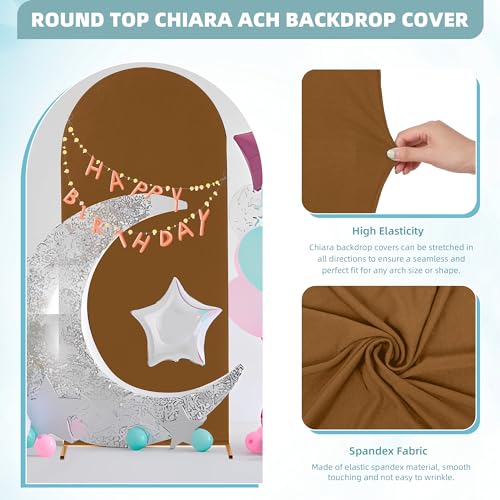 Jieqier Brown Arch Backdrop Covers – 6FT Round Top Arched Backdrop Stand Fabric Cover, DIY Stretchy Backdrop Wedding Arches Frame Cover, Chiara Background Stand Cover for Ceremony Birthday Parties