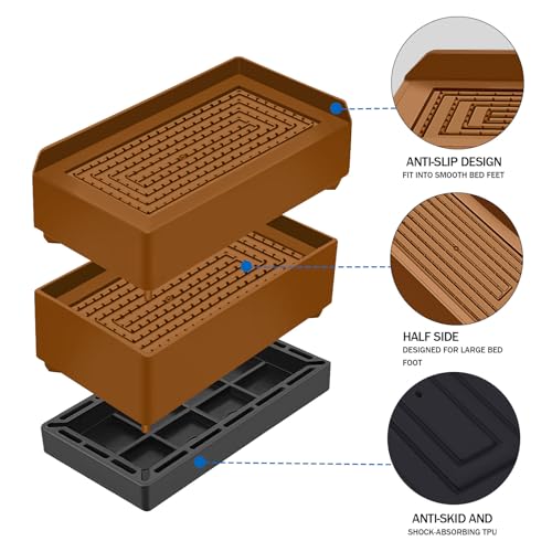 ?NON-SLIP & STABLE?- The surface of bed furniture risers are rough and convex to keep off the furniture legs from slipping and causing instability. In addition, the bottom of this bed legs Risers are made of TPU non-slip rubber (extreme Solid Design) which can be firmly stick to the floor and protect floors without occurring any dent or scratch on hardwood or hard surfaces.