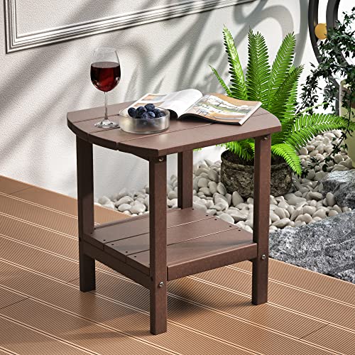 Patio Adirondack Side Table, Outdoor End Tables All-Weather Resistant HDPE Humidity-Proof Long Time Use for Deck, Lawn,Garden, Porch, Backyard End Table?Brown Color?(2 Tier)