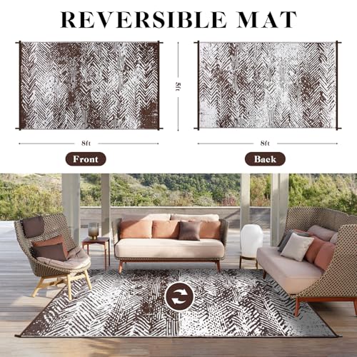 TUKDAK Outdoor Patio Rugs 4×6, Waterproof Reversible Outdoor Plastic Straw Rug Brown, RV Camping Mats UV-Resistant Outside Carpet Portable Area Mat for Garden Balcony Deck Picnic Beach Porch
