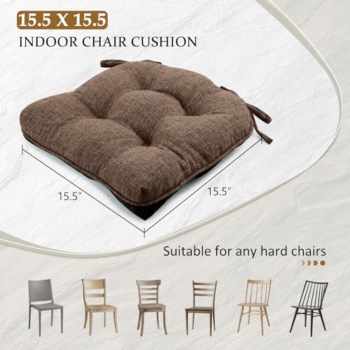 LOVTEX Kitchen Chair Cushions Set of 4, Non-Slip Chair Cushions for Dining Chairs, Shredded Memory Foam Chair Pads with Ties, Tufted Dining Chair Cushions, 15.5″ x 15.5″, Brown