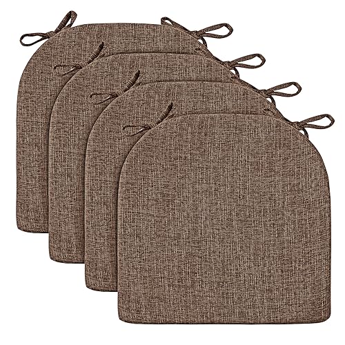 Wellsin Chair Cushions for Dining Chairs 4 Pack – Kitchen Chair Cushions with Ties and Non-Slip Backing – Dining Chair Pads 16″X16″X2″, Brown