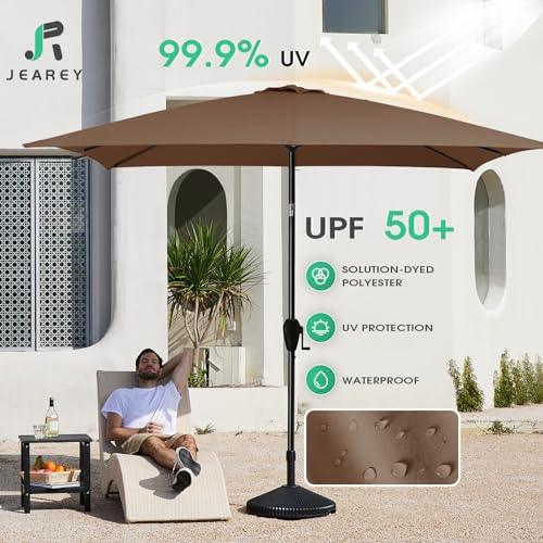 JEAREY 6.5’x10′ Rectangular Patio Umbrellas Outdoor Large Market Umbrella Pool w/Push Button Tilt & Crank Lift System 6 Sturdy Ribs UV Protection Waterproof Sunproof, Brown