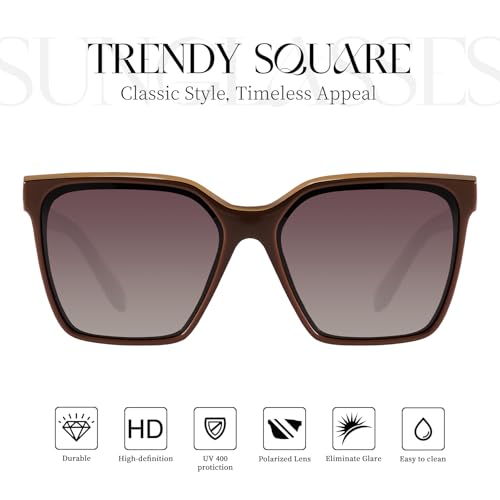 mosanana Square Polarized Oversized Sunglasses for Women Men Trendy Retro Sunnies Brown Fashion Shades 2025 UV400 MS52367