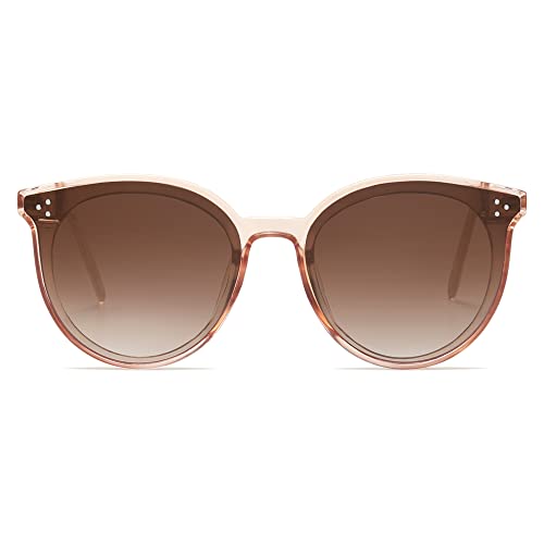 SOJOS Classic Oversized Round Sunglasses Womens Mens Trendy Large Frame Sunnies SJ2068, Clear Brown/Gradient Brown