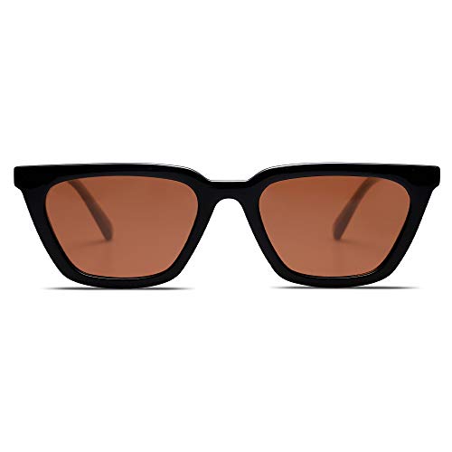 SOJOS Polarized Narrow Square Cateye Sunglasses for Women Retro Trendy Driving Glasses SJ2169 with Black Frame/Brown Lens