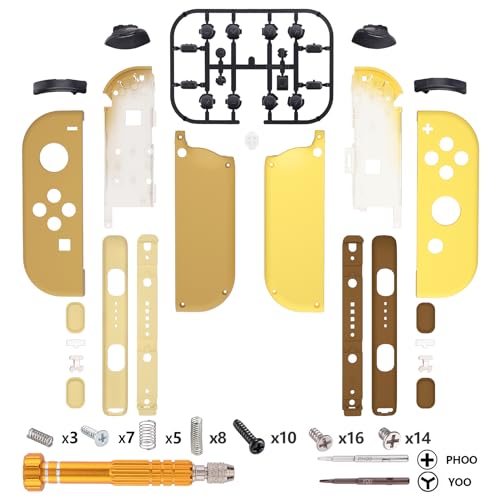 • Package includes replacement shells for Joycon & Strap (no electronics part included), full set buttons, cross, tri-wing screwdrivers set and spare screws