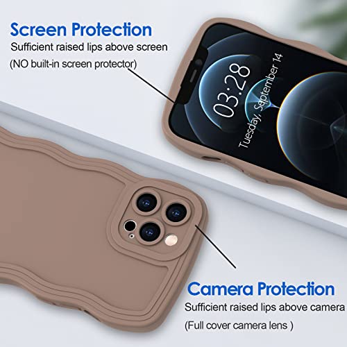 Anuck Case for iPhone 12 Pro Case Wave, Curly Frame Design for Women Girls, Cute Wavy Solid Color Aesthetic Phone Case Soft Flexible TPU Shockproof Full-Body Protective Case Cover 6.1 inch – Brown