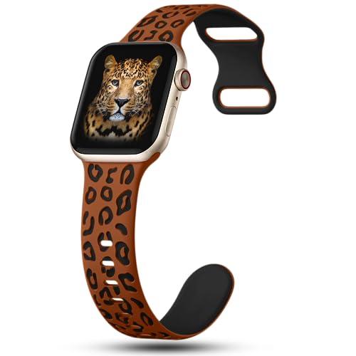 CreateGreat Sport Leopard Engraved Bands Compatible with Apple Watch Band 41mm 40mm 38mm Women, Silicone Luxury Cheetah Designer Sport Strap for iWatch Bands Series SE 8 7 6 5 4 3 2 1.BR&BK
