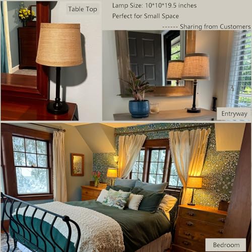Click for More Images Black Table Lamp: Constructed of high-quality pull chain table lamp base and fabric shade,the small table lamp add a touch of elegance and stylish to your house,great to be used as black lamps,reading light,living room...