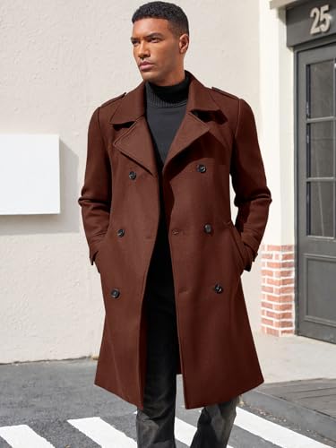Click for More Images Material: Shell: Men's long trench coat jacket is well made of 95% polyester + 5% cotton; Lining: 100% polyester. Touch soft and comfortable, suitable for casual daily wear or business formal wearFeatures: Winter overcoats...