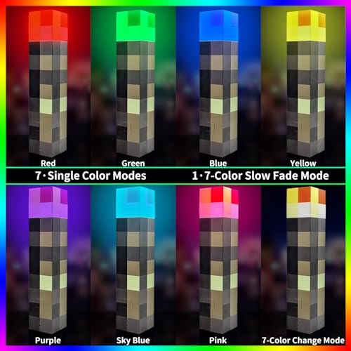 Click for More Images 7 COLORS DISPLAY: The torch light can show 7 colors include pink,yellow,green,blue,purple,sky blue,light purple and 7-color change mode.The colorful light suit to different scenes and moodPORTABLE Plastic Torch Light : The...