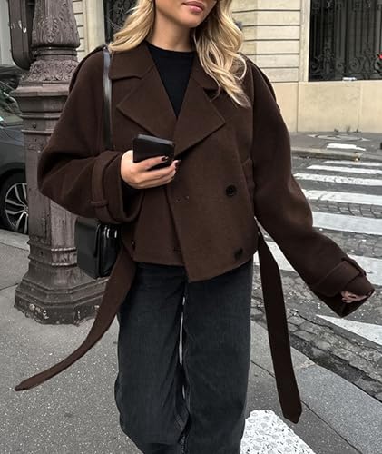 Click for More Images ??Fabric? Wool blended fabric, Solid color, Soft and warm, Suitable for spring, Fall, Winter.??Design? This short trench coat for women has lapel collar classic design. Wool blend coats for women features the long sleeve,...