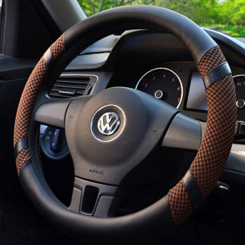 BOKIN Steering Wheel Cover Microfiber Leather and Viscose, Breathable, Anti-Slip, Odorless, Warm in Winter and Cool in Summer, Universal 15 Inches (Brown)