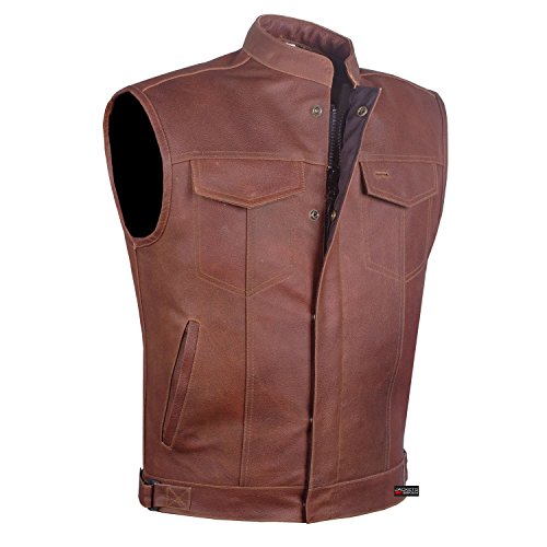 Men Armor Distress Brown Leather SOA Motorcycle Concealed Carry Club Vest XL