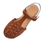 Women Fashion Woven Sandals Closed Toe T Strap Slingback Vintage Ankle Stra…