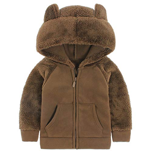 Goodkids Bear Ears Shape Fleece Warm Hoodies Clothes Toddler Zip-up Light Jacket Sweatshirt Outwear for Baby Boys Girls (Coffee 130)