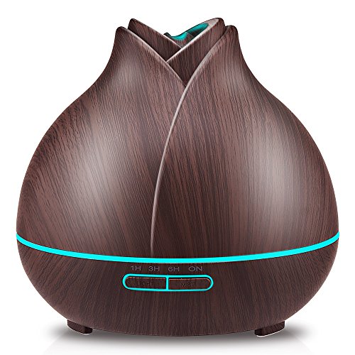 URPOWER 400ml Wood Grain Essential Oil Diffuser, Running 10+ Hours Aromatherapy Diffuser for Essential Oils with 2 Mist Modes, 4 Timer Setting, Whisper Quiet Humidifiers for Bedroom, Home, Office