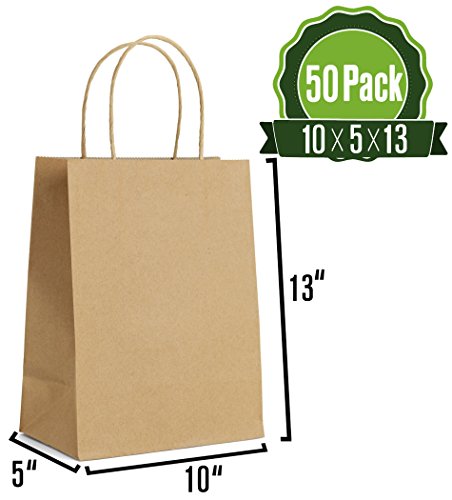 10 X 5 X 13 Kraft Paper Gift Bags Bulk with Handles [50Pc]. Ideal for Shopping, Packaging, Retail, Party, Craft, Gifts, Wedding, Recycled, Business, Goody and Merchandise Bag (Brown)