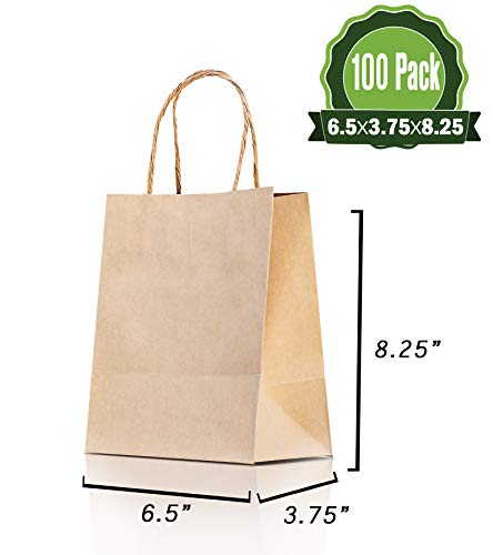 Brown Kraft Paper Gift Bags Bulk with Handles [ Ideal for Shopping, Packaging, Retail, Party, Craft, Gifts, Wedding, Recycled, Business, Goody and Merchandise Bag] (100 Bags)