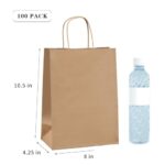 METAPRINT 100 Pack 8×4.5×10.8 Inch Medium Paper Gift Bags with Handles Bulk, Brown Kraft Paper Bags for Grocery Shopping Retail Bags, Birthday Party Favors Wedding Bags