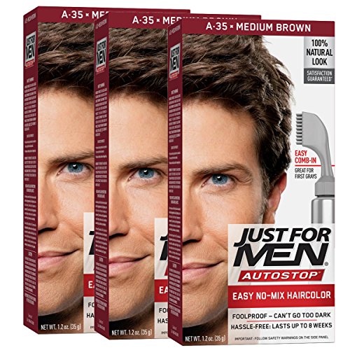 Just For Men AutoStop Men’s Comb-In Hair Color, Medium Brown (Pack of 3)