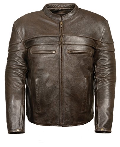 Milwaukee Leather Men’s Sporty Scooter Crossover Jacket, Premium Retro Brown Leather 1.2-1.3mm w/ Full Sleeve Zip-Out Thermal Liner, Two Lower Zippered Hand Pockets w/ Lower Side Zippers for Optimal Comfort, Chest, Arm & Back Vents w/ Full Action Back, Full Chest, Arm & Back Dual Striped Blacked Out Highly Reflective Piping, Built in Dual Side Concealed Weapon & Ammo Pocket