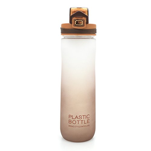 TClian Sport Water Bottle 600ml 20oz, BPA Free Plastic, Flip Top Lid, Opens With 1-Click for Gym, Cycling, Camping, Running, Hiking, Travelling and Outdoors (Brown)