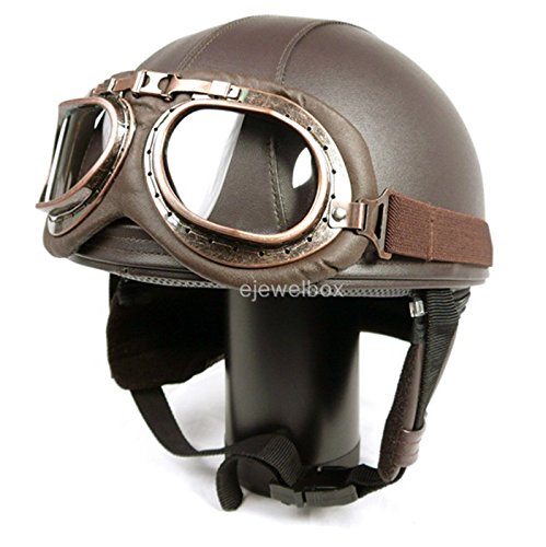 Vintage Motorcycle Motorbike Scooter Half Leather Helmet Brown wlth Free Goggles Goggles Vintage Style Retro Brown HALF Helmet Helmet + Goggle + ear muffle Color : Brown-This is an artificial leather Size : One size (56-58cm / 22inch ~ 22.8 inch) (Size Check : It is much accurate if you purchase it after you measure your head girth with tape measure.) All of our products are new, unused, and shipped in the factory packaging. ABS material strong from impact. Using a convenient chin strap one touch buckle. High grade fabric is used. It is consisted of goggle + ear muffle + helmet.