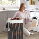 SONGMICS Laundry Hamper with Lid, 17.2 Gallon (65 L) Synthetic Rattan Cloth…