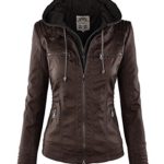 Lock and Love LL WJC663 Womens Removable Hoodie Motorcyle Jacket L Coffee