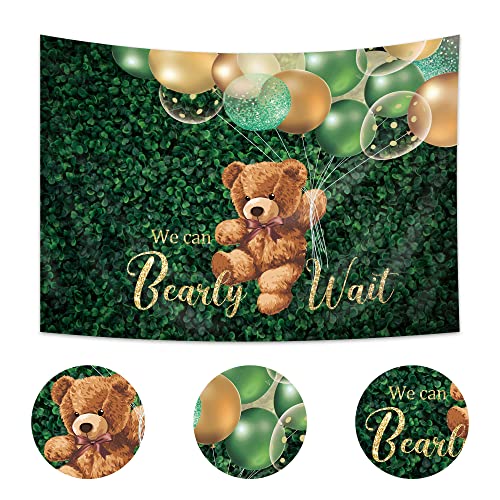 Imirell Green Bear Baby Shower Backdrop 7Wx5H Feet Boho Greenery Grass Leaf Wall Brown Teddy Bear Kids We Can Bearly Wait Photography Backgrounds Photo Shoot Decor Props Decoration