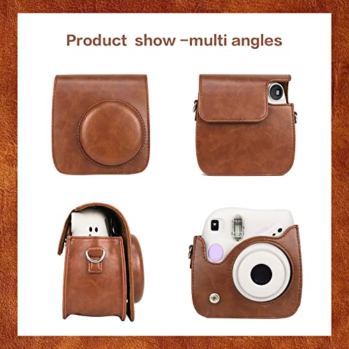MUZIRI KINOKOO Protective Case Compatible with Fuji Instax Mini 7+ / Mini 7 Plus Instant Camera – PU Leather Case with Adjustable Shoulder Strap – Brown