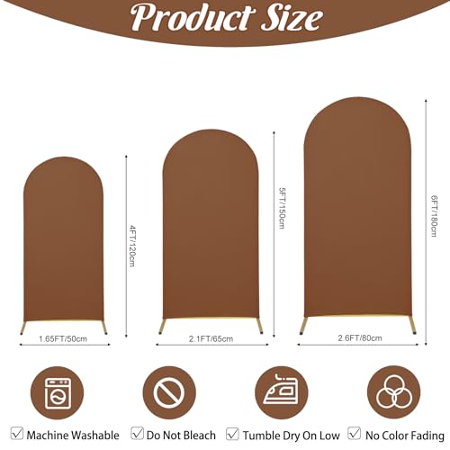 Spandex Fitted Wedding Arch Cover Set of 3 – Brown Backdrop for Round Top Chiara Stand, Birthday Party, Baby Shower, Banquet Decor (4FT, 5FT, 6FT)